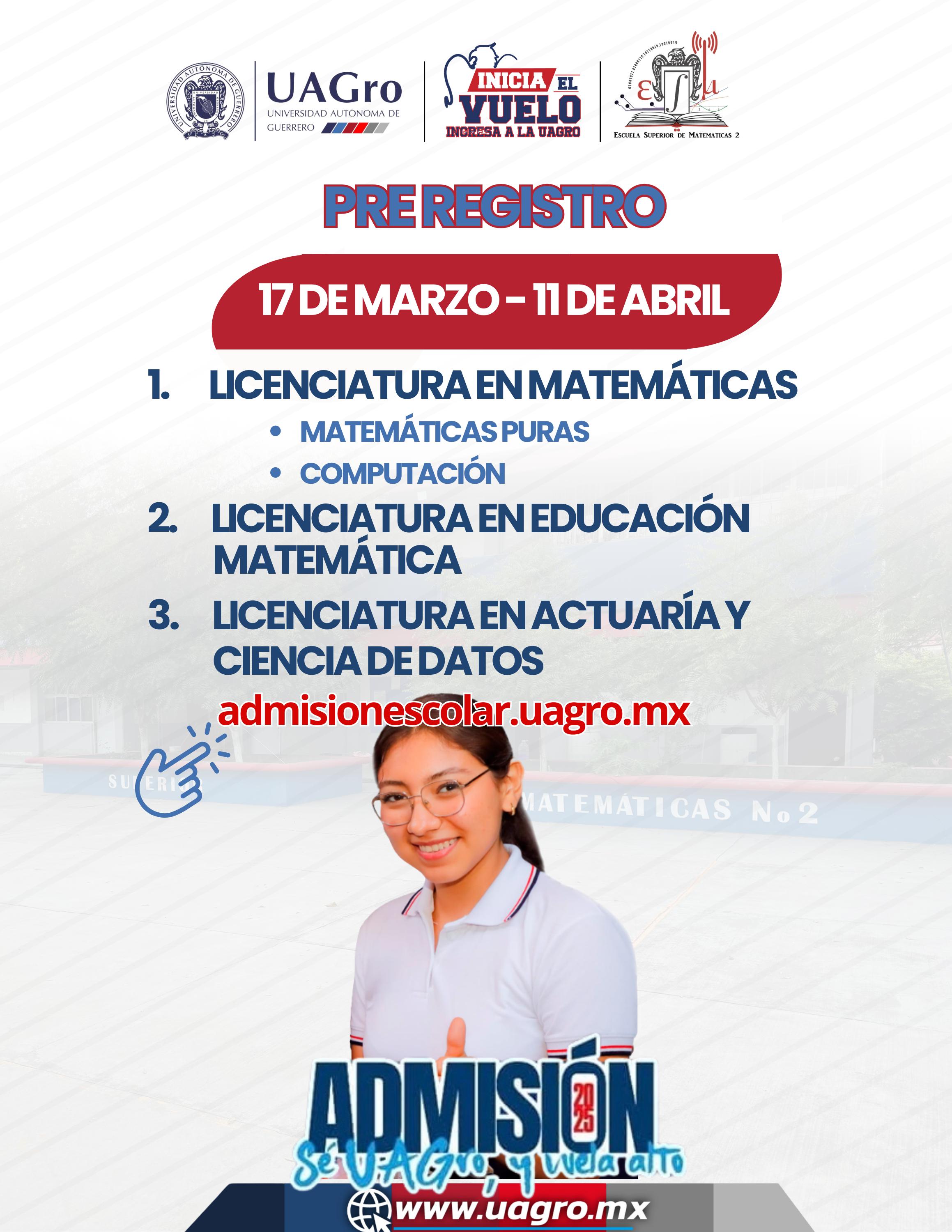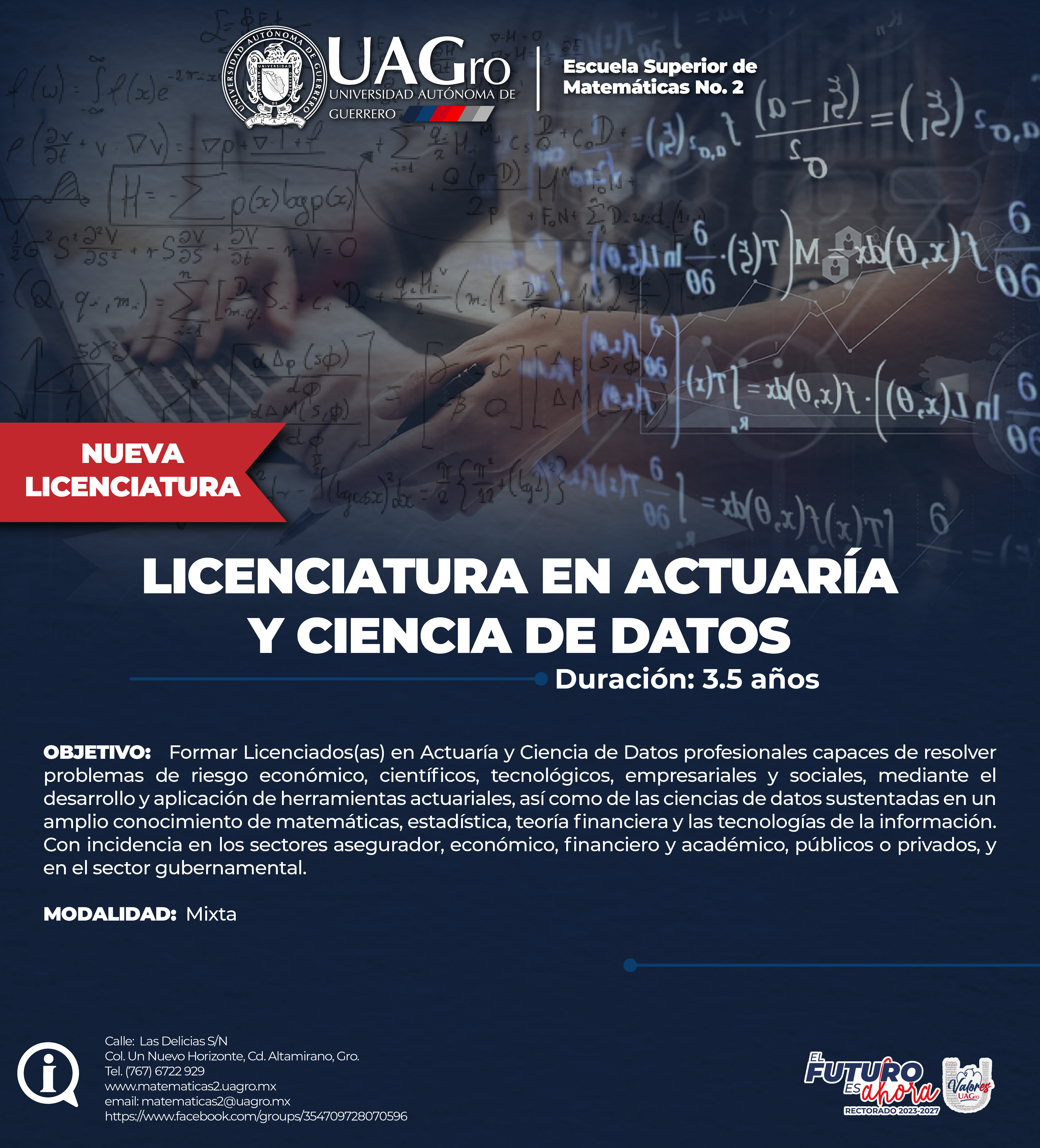 La Escuela Superior de Matemáticas No. 2, se compromete a ofrecer educación superior de calidad mediante su programa educativo de Licenciatura, siguiendo el Modelo Educativo y Académico vigente en la Universidad Autónoma de Guerrero. Nuestros servicios académicos están diseñados para satisfacer las necesidades del entorno, fortaleciendo la actividad de vinculación a través de la docencia, la investigación y la atención a instancias externas, contribuyendo así al desarrollo económico y social. Implementamos programas integrales de atención y acompañamiento para la formación del estudiante, brindando servicios de apoyo académico y asistencial, así como oportunidades de movilidad académica, servicios escolares y becas.